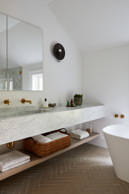 Items set in a niche automatically feel tidier and more like a gallery display than loose items on an open surface, so consider adding a niche to an empty wall space to allow for quick access to products (especially those for the bath or shower).